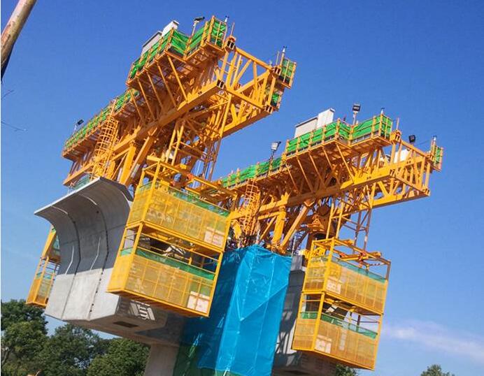 采用T構懸拼和逐跨懸掛拼裝兩種施工方法,過程中有橫移施工 。