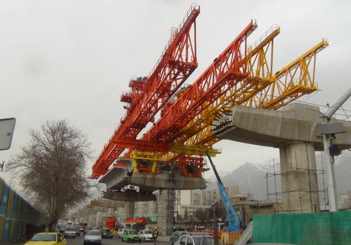 橋梁結構為雙幅連續梁,單孔最大50米跨,整跨重量1000噸,梁型為節段箱梁,單片梁重最大80噸,最大縱坡6%,最小半徑380米。
