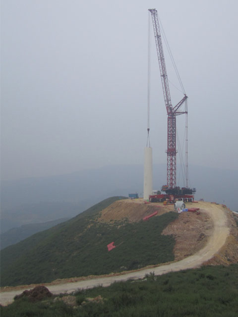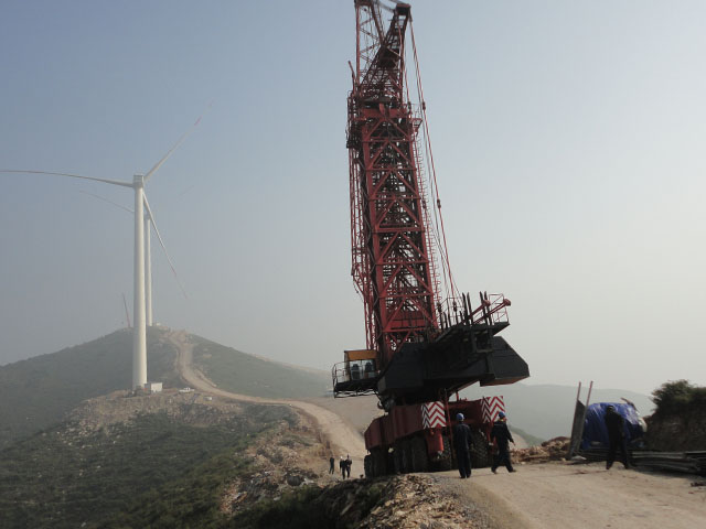 2012年7月,我公司9096A施工隊(duì)進(jìn)駐大唐河南三門峽陜縣風(fēng)電施工工地,開展為期2個(gè)月的緊張施工。三門峽陜縣地處陜西,河南兩省邊界,多山少雨,水資源匱乏,位于王家后鄉(xiāng)的施工工地更是吃水困難。而且相比之下,施工工況則更是復(fù)雜,轉(zhuǎn)場(chǎng)道路中大于20%的縱坡總計(jì)有17個(gè),最大的達(dá)到25%。然而這并沒有難倒我公司久經(jīng)沙場(chǎng)的施工隊(duì)伍,他們精益求精,屢克難關(guān),僅23天就完成了施工總工程量一半的工作內(nèi)容,前期的高效工作為攻克25%陡坡提供了充足的時(shí)間,施工隊(duì)伍為最后的爬坡預(yù)留了5小時(shí)的時(shí)間,以時(shí)間換安全,順利移動(dòng)到下一個(gè)施工位置,最終保證整個(gè)工程又快又好又安全的完成。
